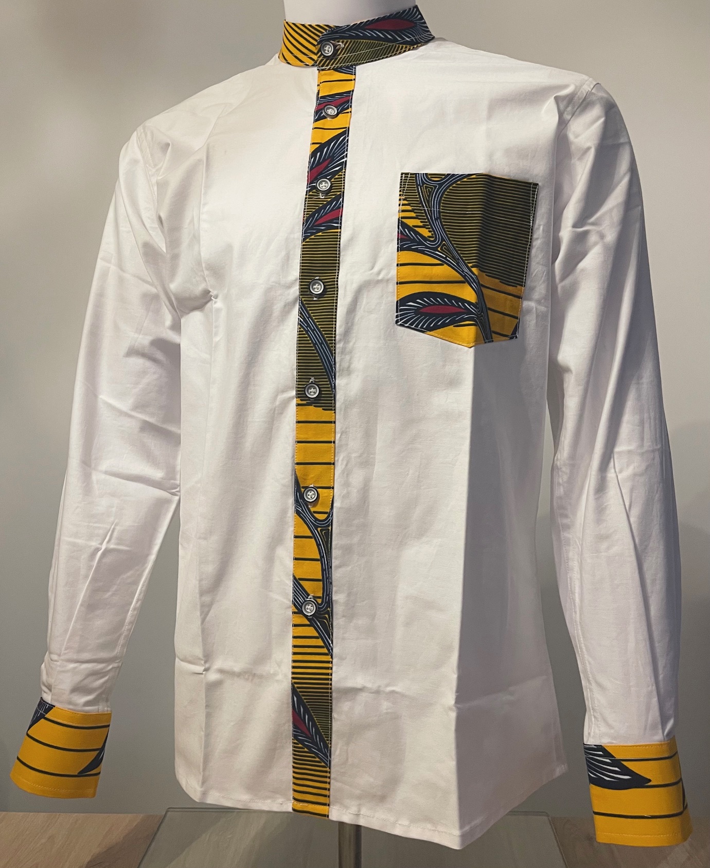 Découvrez notre chemise sur mesure en wax africain, alliant tradition et style contemporain.