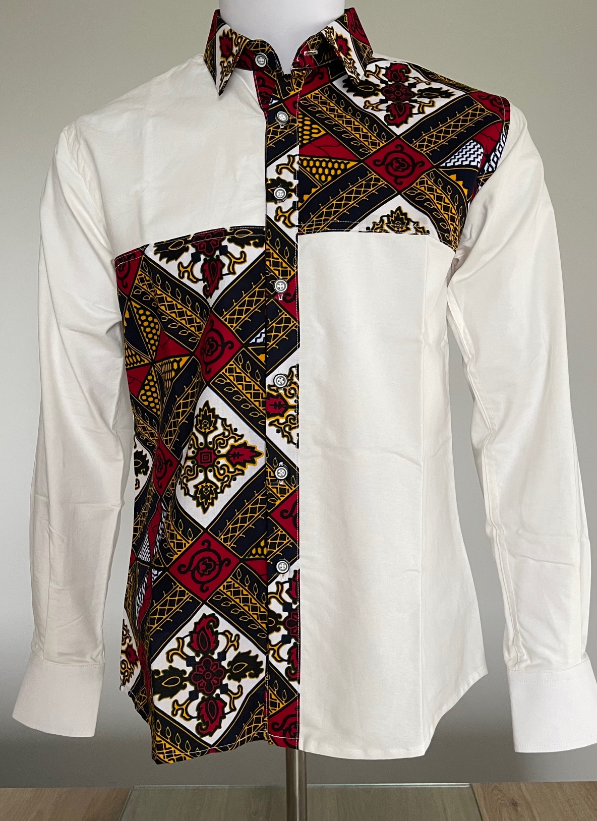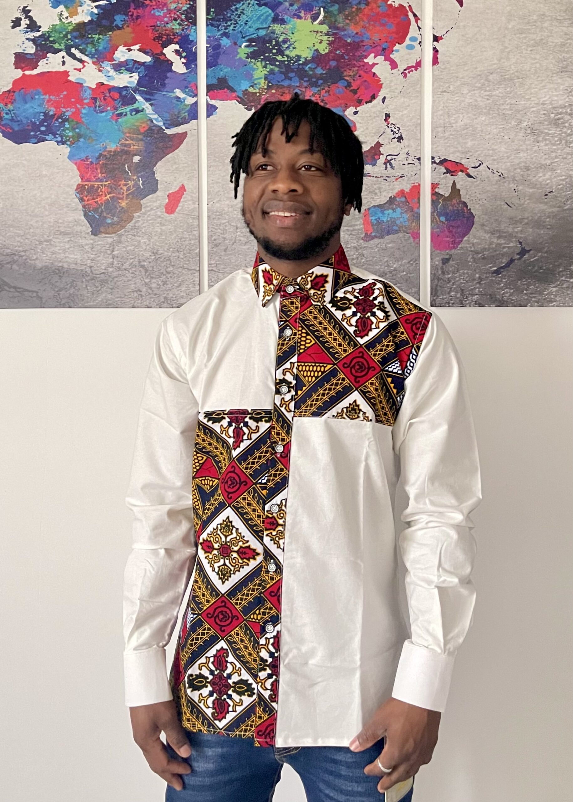 Découvrez notre chemise sur mesure en wax africain, alliant tradition et style contemporain.
