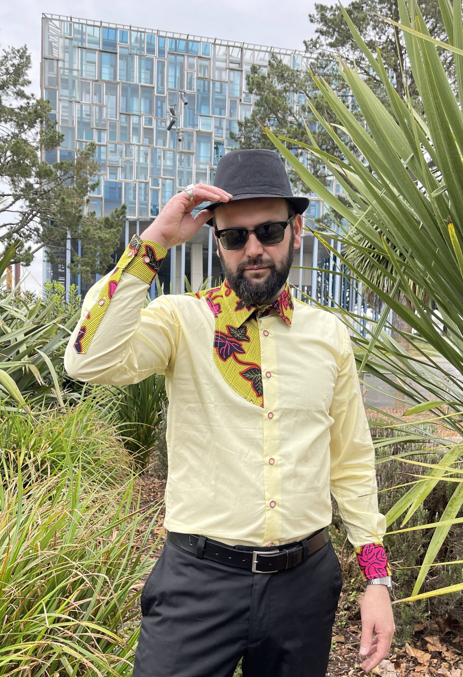 Découvrez notre chemise personnalisée en wax africain, alliant tradition et style contemporain.