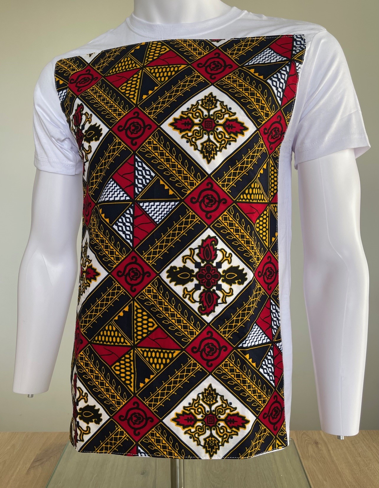 Découvrez notre T-shirt personnalisé avec des pagnes aux endroits que vous souhaitez et choisissez les options à ajouter.